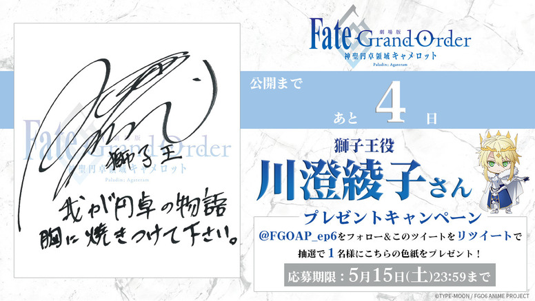 公開まであと4日 川澄綾子さんからの直筆メッセージを公開 プレゼントキャンペーンも実施 News Fate Grand Order 神聖円卓領域キャメロット 公式サイト